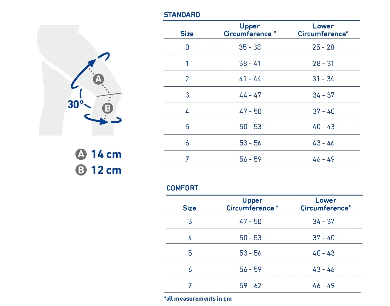 Measure the Upper Circumference 14cm above the knee.