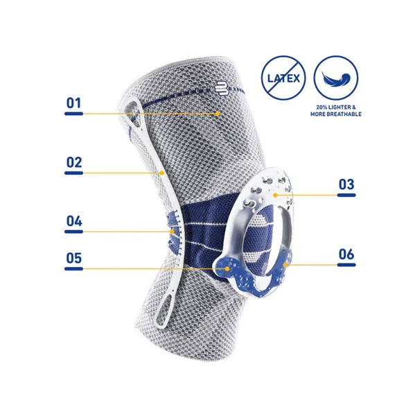 The GenuTrain knee brace remains securely in position during movement. Lateral rigid plastic stays embedded in the brace have flexible bending zones that follow the user’s movement patterns and stretch the knitted fabric around the knee so it does not slip. Donning and doffing aids integrated into the stays make it easier to put the support on and take it off. Thanks to compression-reduced edges and a soft, airier knitted comfort zone in the hollow of the knee, GenuTrain is comfortable to wear, even during longer periods of intensive movement during the day.